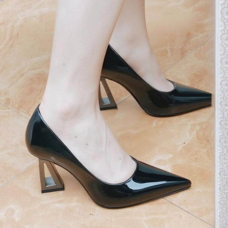 2025 Новые женские туфли-лодочки из лакированной кожи с закрытой стопой, нескользящие, универсальные, с французским острым носком и формованным каблуком