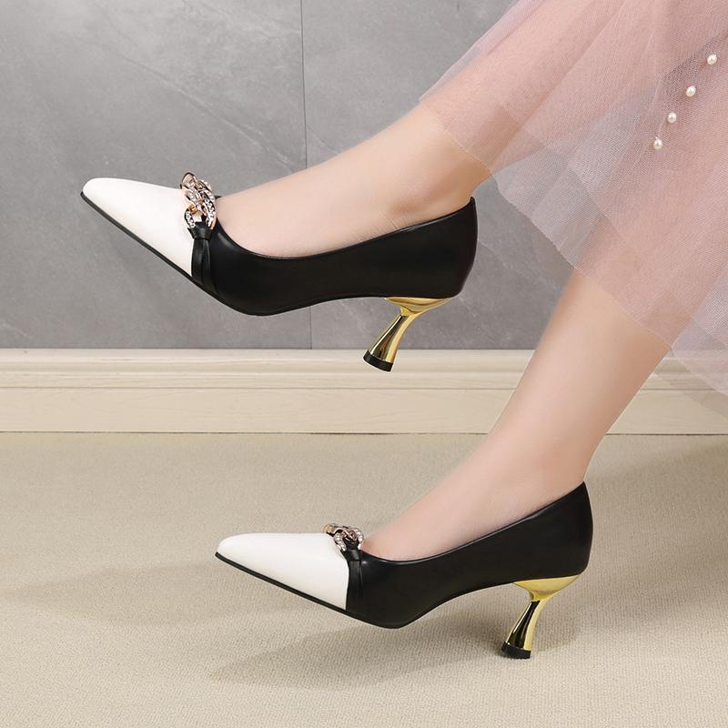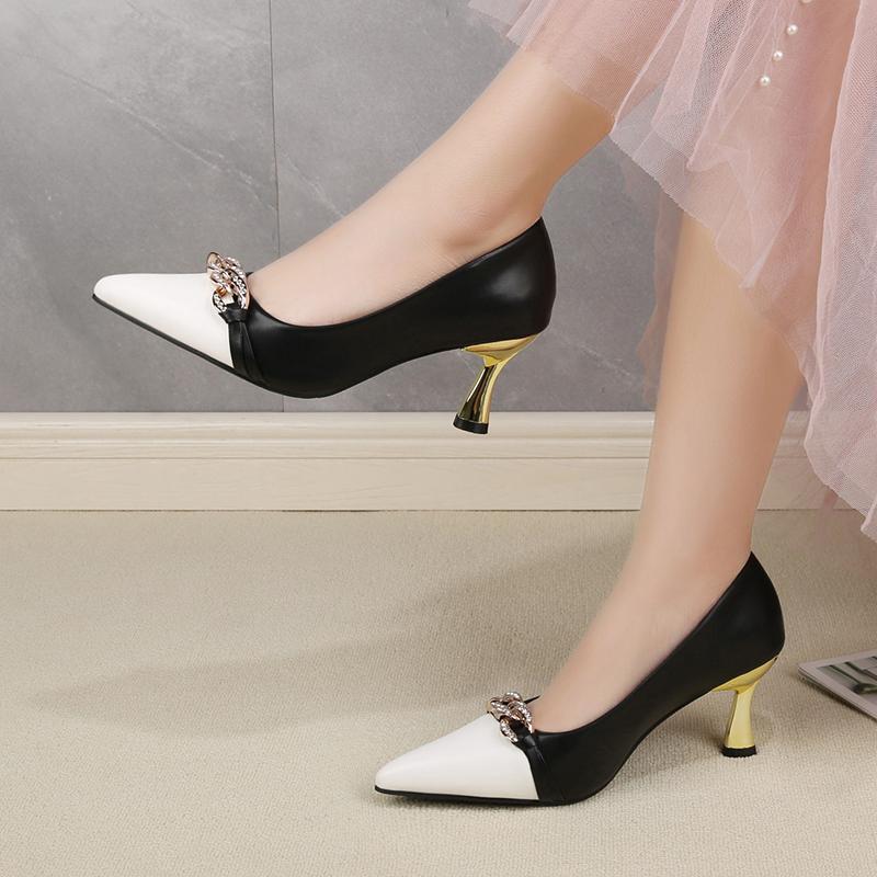 Женские классические туфли на высоком каблуке высокого качества Женская мода весна-лето 2025 Элегантные туфли-лодочки с неглубоким вырезом Простой стиль Zapatos De Mujer
