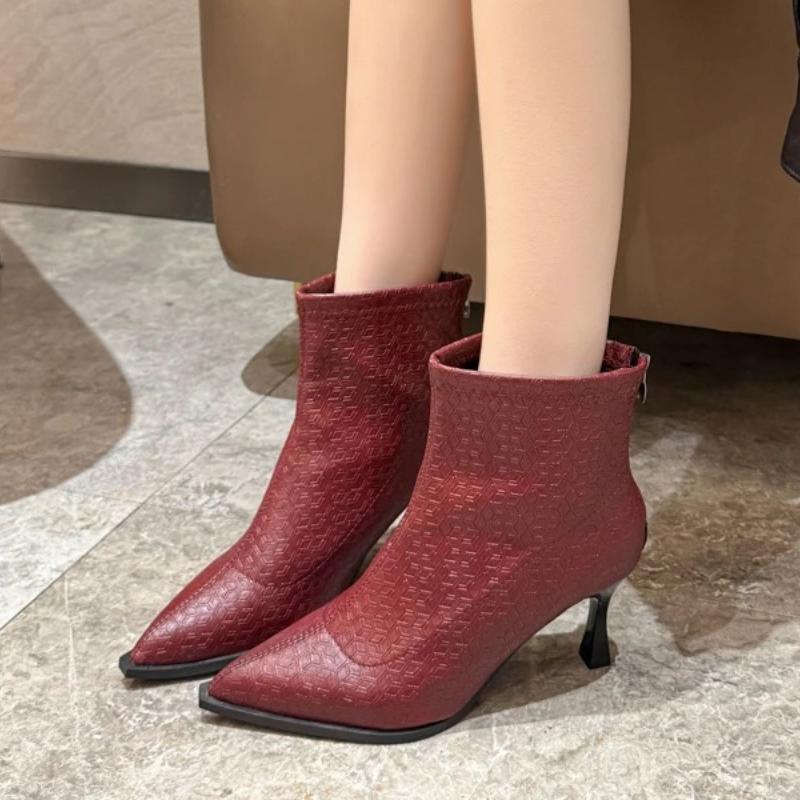 2025 Осень Новые Ботильоны-стилет с острым носком 'нюд' Женские Универсальные Темпераментные Ботильоны с боковой молнией