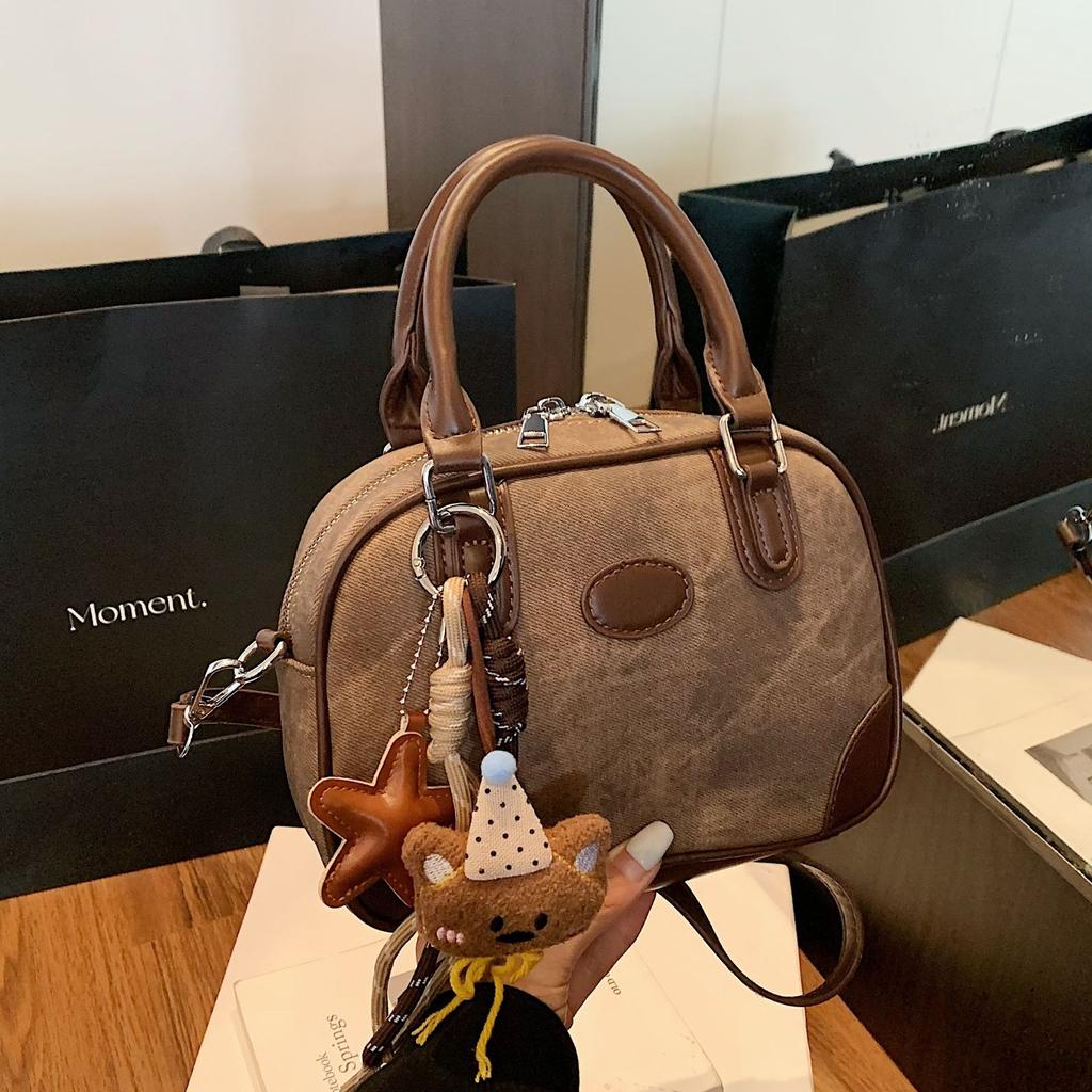 Нишевая сумка высокого класса, Ретро и универсальная сумка кроссбоди, Цветная сумка-боулинг с ручками