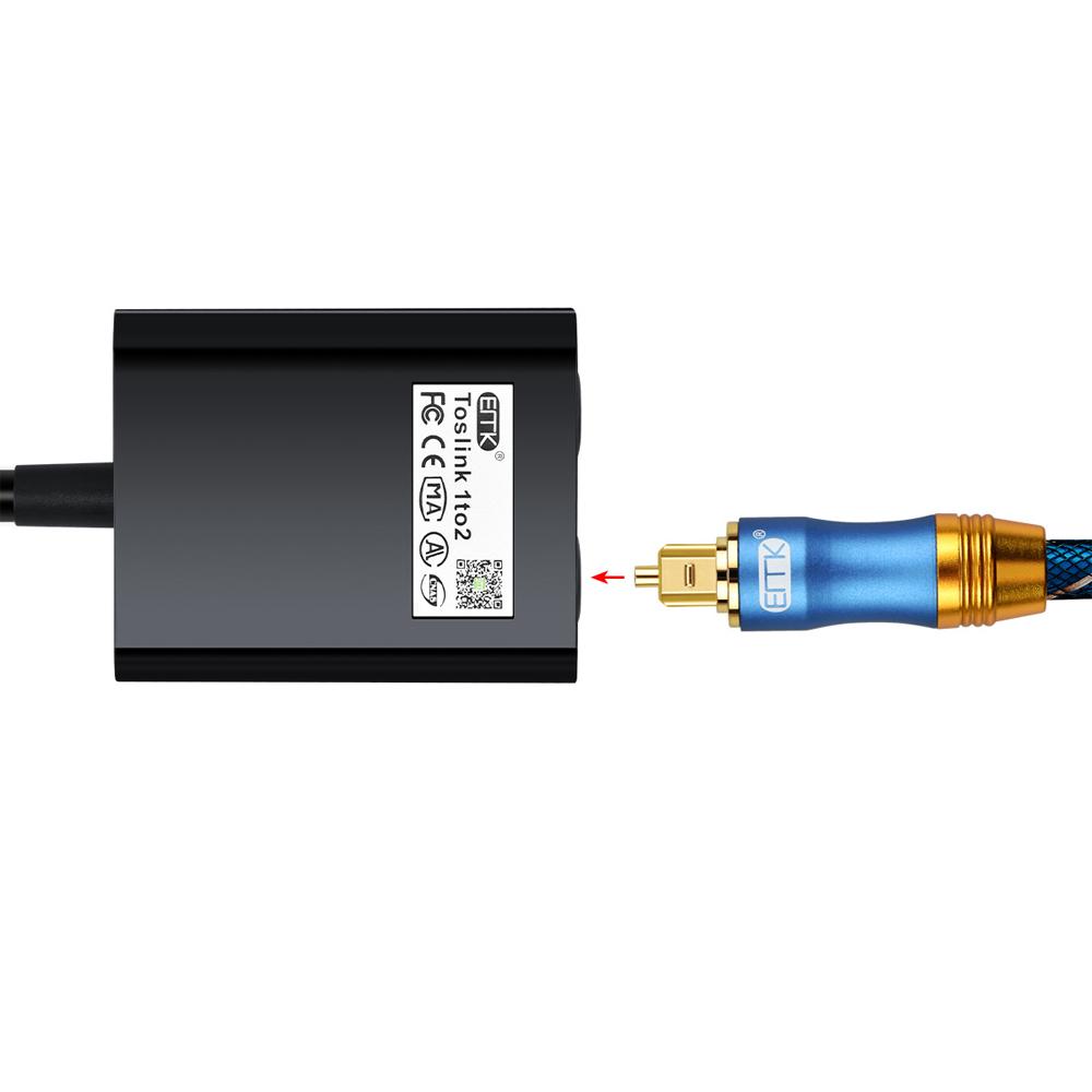 Аудиоадаптер 1 к 2 Цифровой оптический кабель Разветвитель Оптический аудиоадаптер Волоконно-оптический дистрибьютор Адаптер Черный