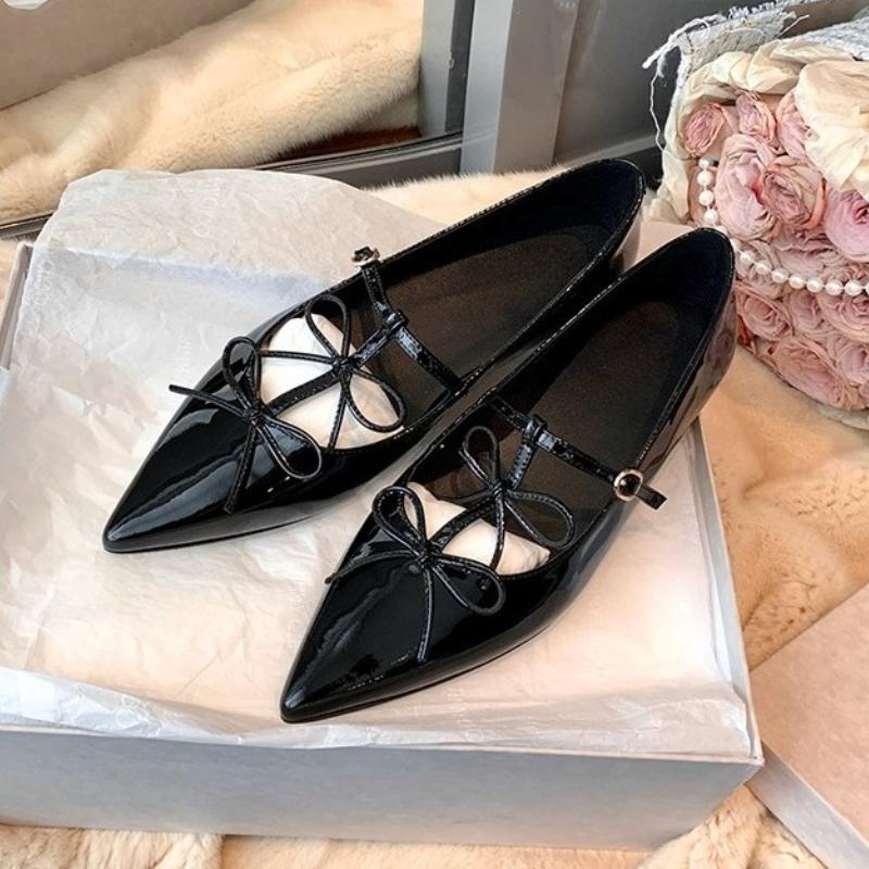 2025 Туфли-лодочки с Т-образным ремешком и острым носком Женские туфли с бантом и ремешком с пряжкой из ПУ кожи Элегантные красные туфли Мэри Джейн Женские туфли для вечеринки Черные лодочки