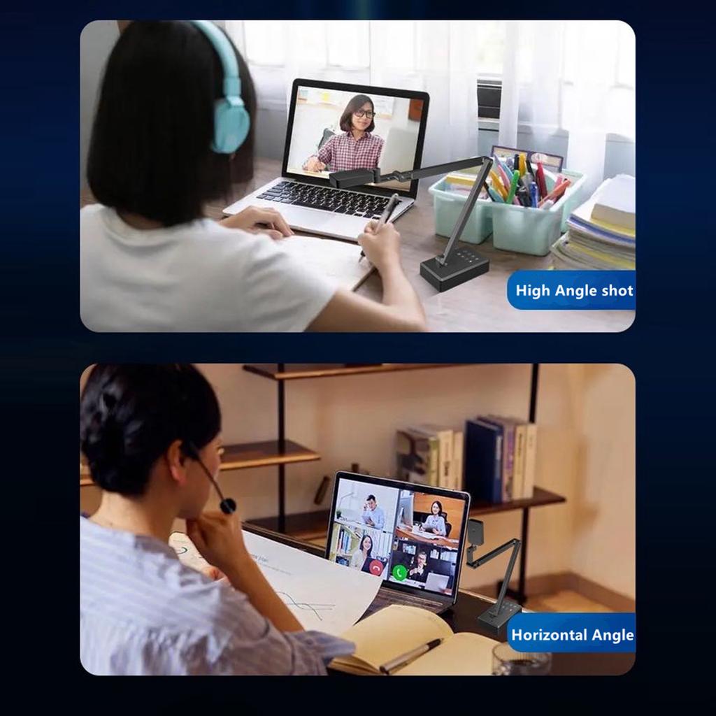3. (Multi Angle Adjustment)The product support frame is designed with 5 adjustable angle positions to meet your shooting needs at different angles, suitable for live streaming, live demonstration, web conferencing, distance learning and other scenarios, providing a flexible and convenient use experience.