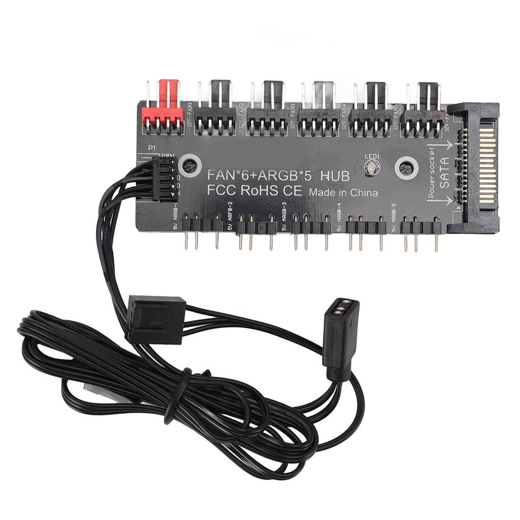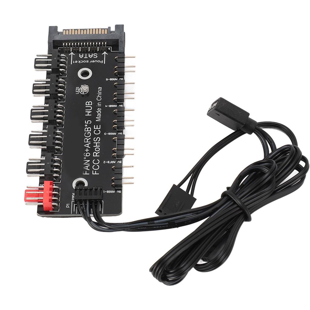 Разветвитель-хаб 2 в 1 5 портов 5 В 3-контактных ARGB 6 портов 12 В 4-контактных PWM 15-контактный SATA-разъем питания Хаб для вентиляторов охлаждения корпуса ЦП