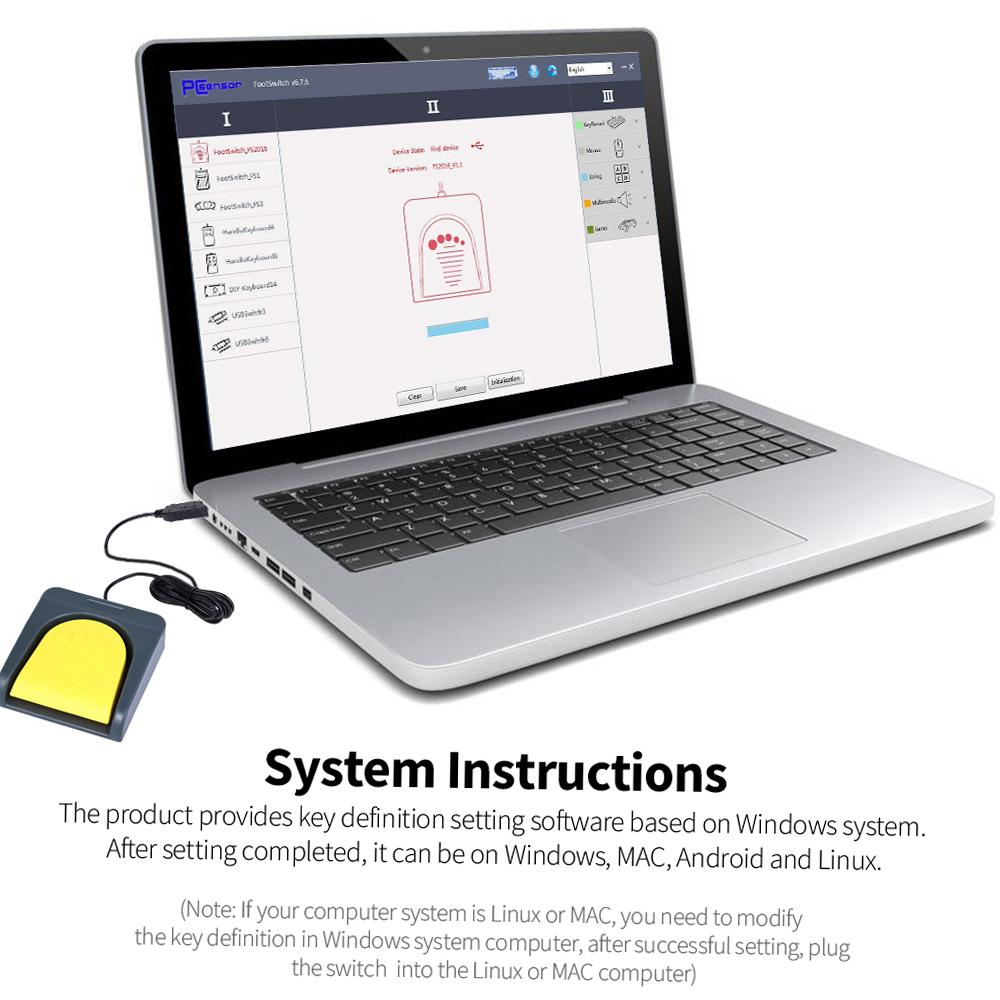 Foot switch pedal switch custom shortcut key multimedia game handle foot switch with line 2 meters gray