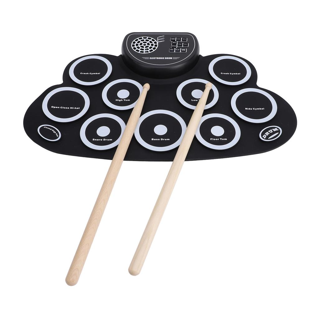 9 пэдов Электронная барабанная установка Перезаряжаемая Встроенный динамик Портативная Складная Электронная тренировочная барабанная установка с разъемом для наушников