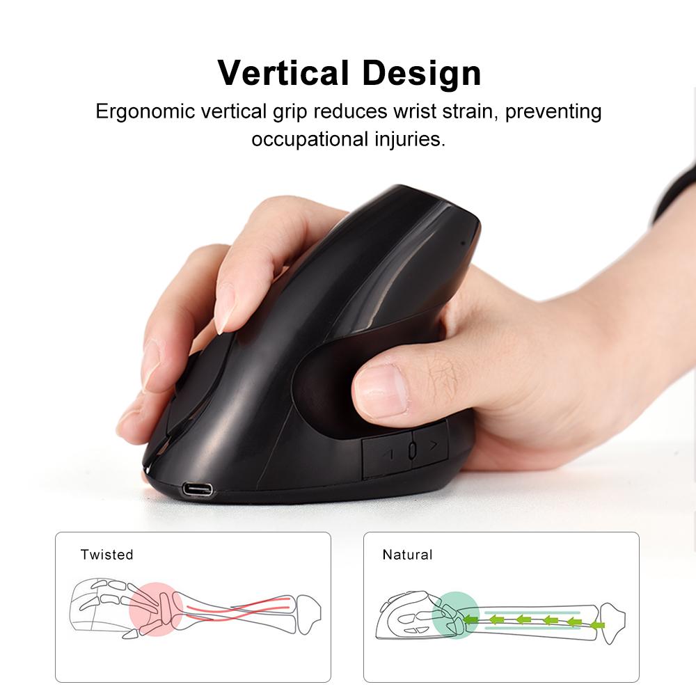 Вертикальная беспроводная эргономичная перезаряжаемая мышь 2,4 ГГц Игровая мышь с зарядкой USB C 2400 Скорость движения для