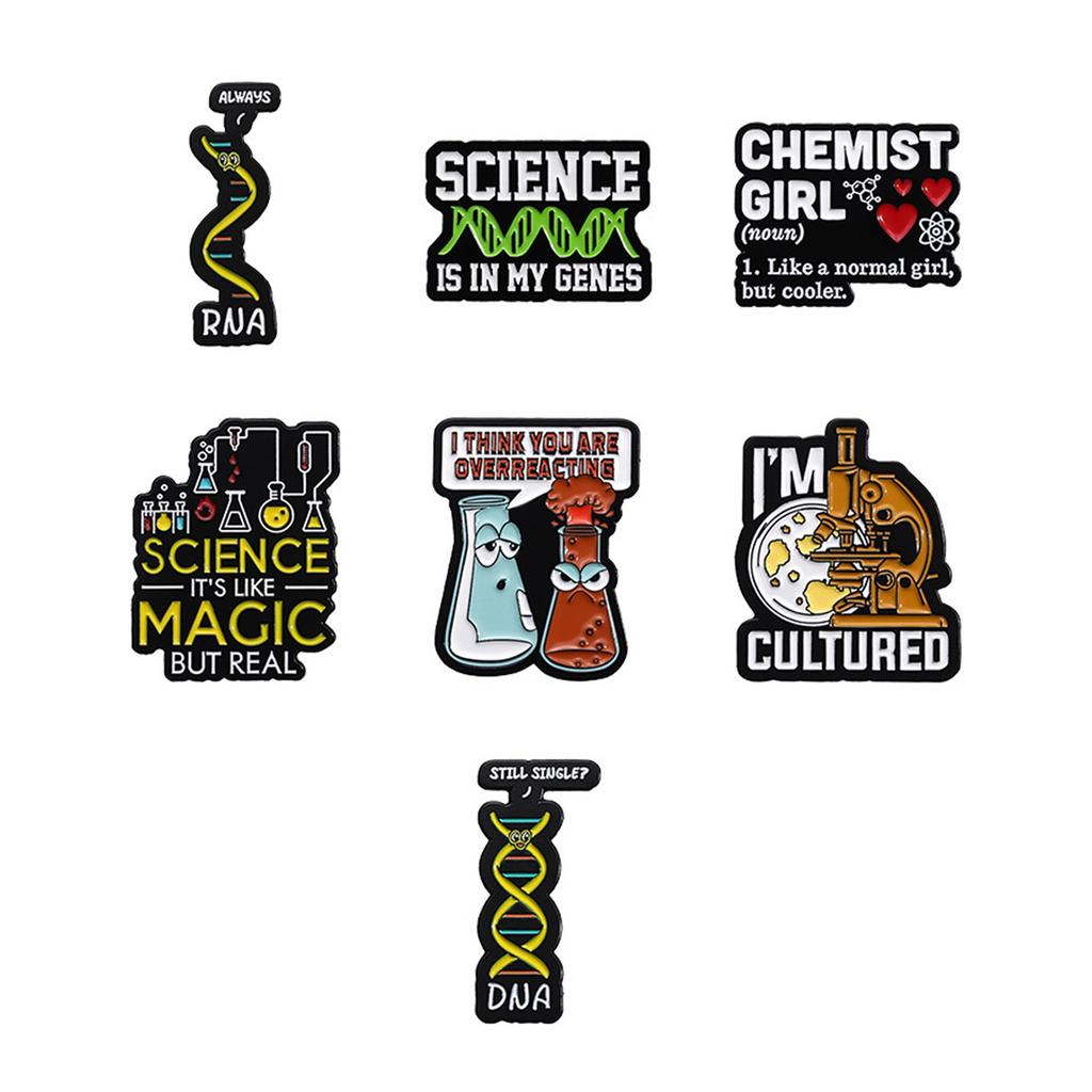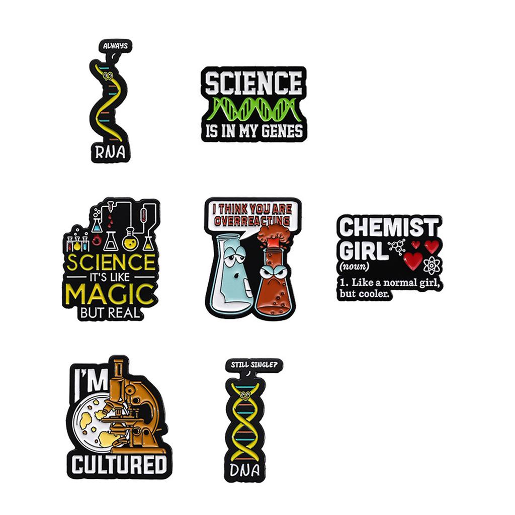 7 шт. Брошь с химической структурой, Забавные значки на лацкан, Серия «Химия и бионауки», Эмалевые значки для украшения рубашки/одежды