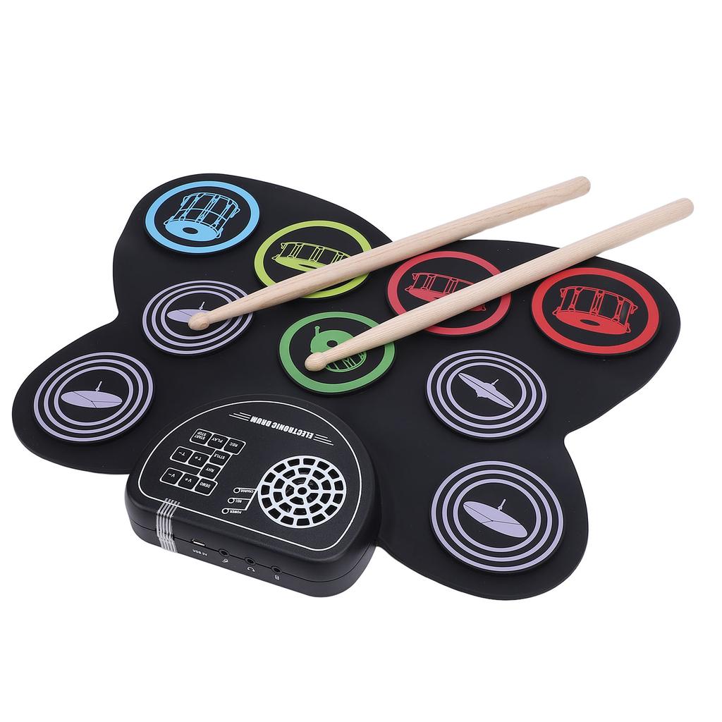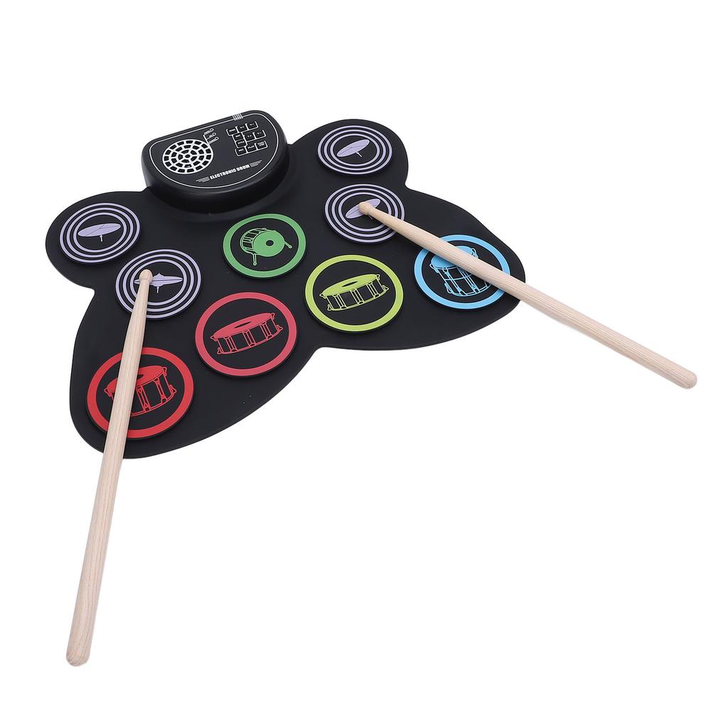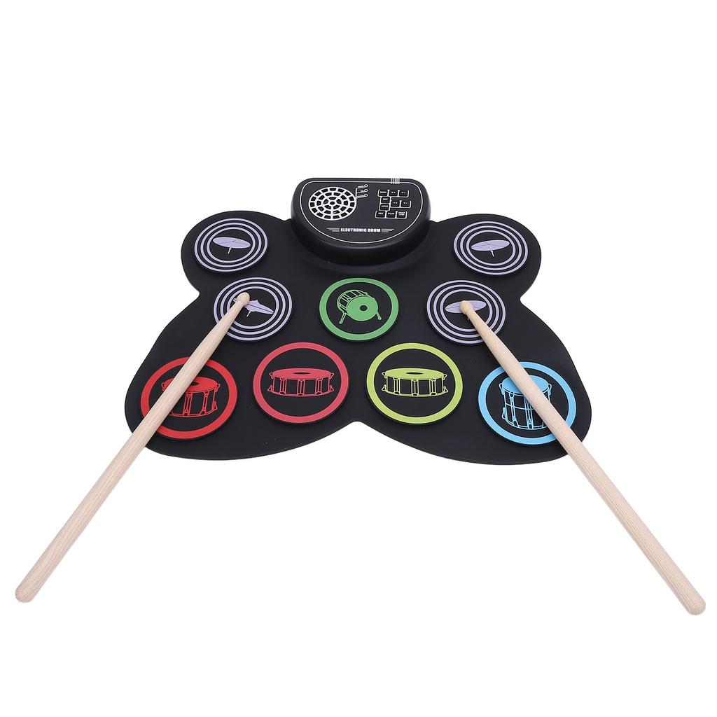 Электронная ударная установка Перезаряжаемая 9 пэдов Портативный сворачиваемый пэд для барабанов Комплект с педалями Барабанные палочки Двойной динамик