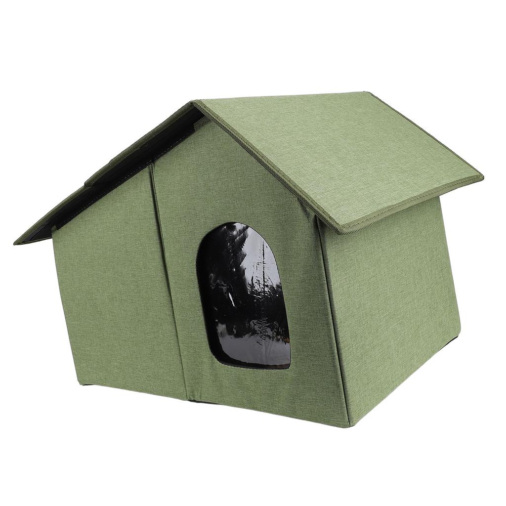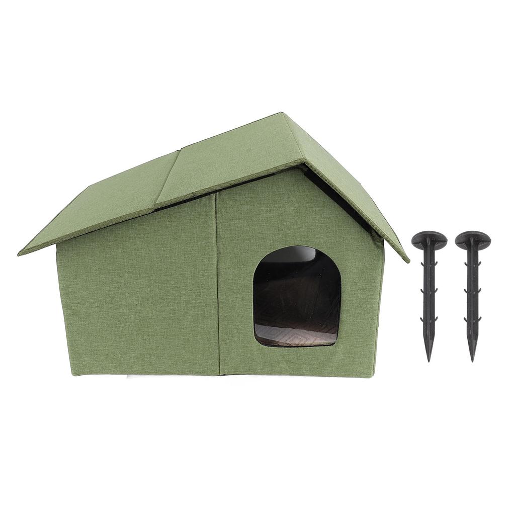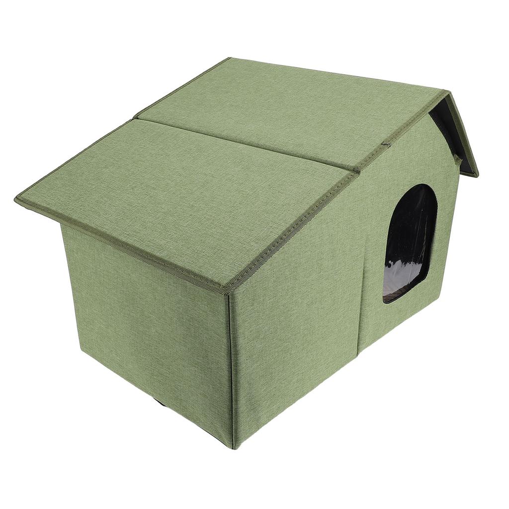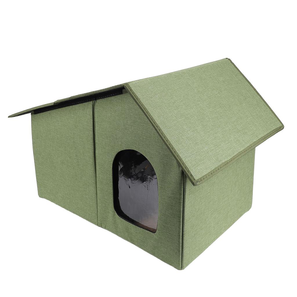 Уличный домик для кошек Водостойкий Всепогодный Просторный Закрытый Складной Кошачий Приют для Всех Сезонов Армейский Зеленый