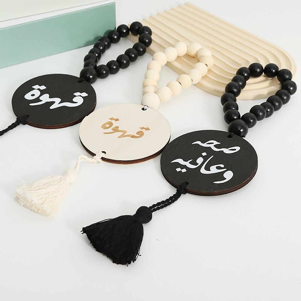 Автомобильный подвесной талисман Натуральные деревянные бусины Табличка Кисточки Подвеска Украшение для стильного интерьера и декора зеркала заднего вида автомобиля