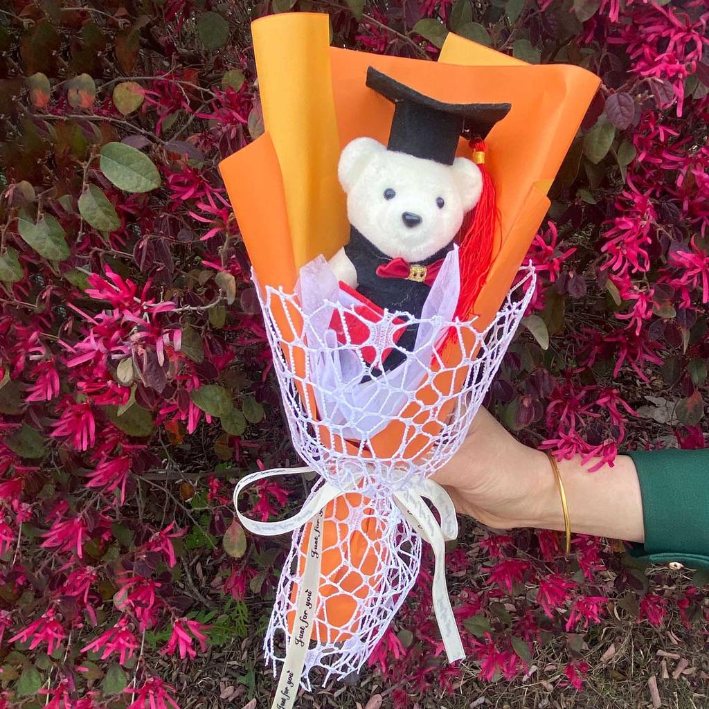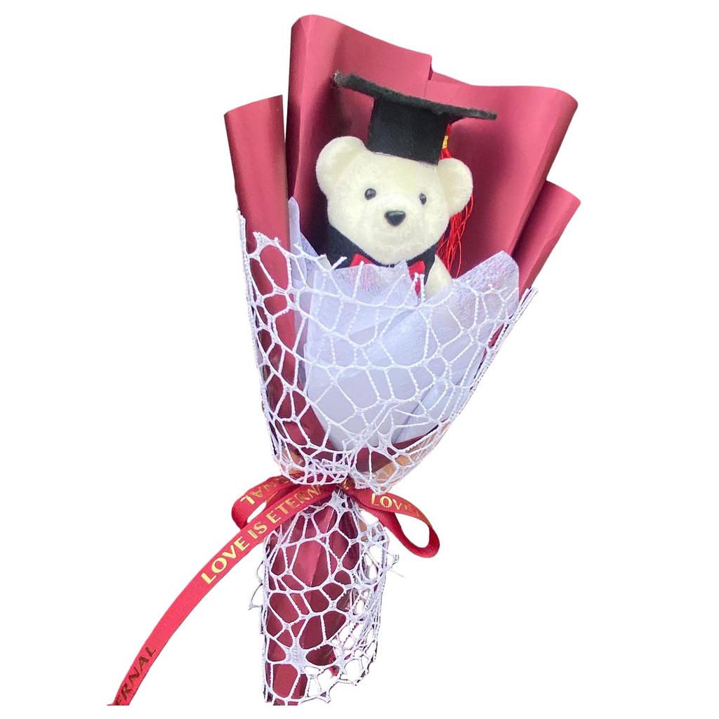 Отпразднуйте особенный момент нашим букетом цветов на выпускной с игрушкой-медвежонком, уникальным выпускным букетом, символизирующим добрые пожелания и отлично подходящим для ознаменования достижения ваших близких.