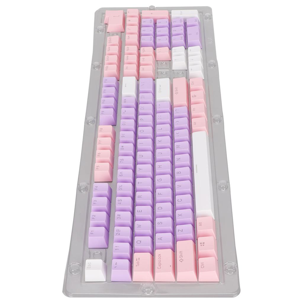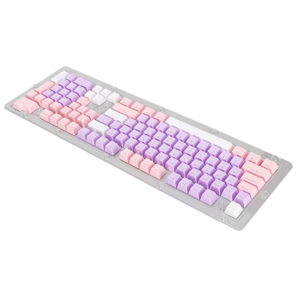 Колпачки для клавиш 107 клавиш Трехцветные полупрозрачные символы Арочная раскладка Колпачки для механической клавиатуры Розовый Фиолетовый Белый