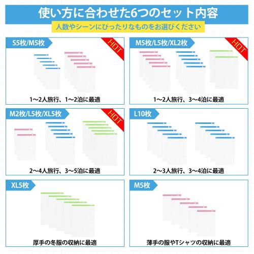 - 🧳 Easy to use design The transparent design allows you to see what's inside at a glance, saving you the hassle of looking for clothes and keeping your suitcase tidy.In addition, with a compression bag set of 5 XL size, 5 L size, and 2 M size bags, you can organize the clothes you wear each day into one bag, making it easier to prepare your daily outfits.Perfect for business trips and travel.Additionally, each size comes in a different color: green for XL, blue for L, and pink for M.This allows you to quickly tell which size it is and improves storage efficiency.