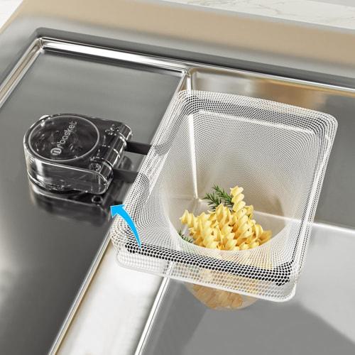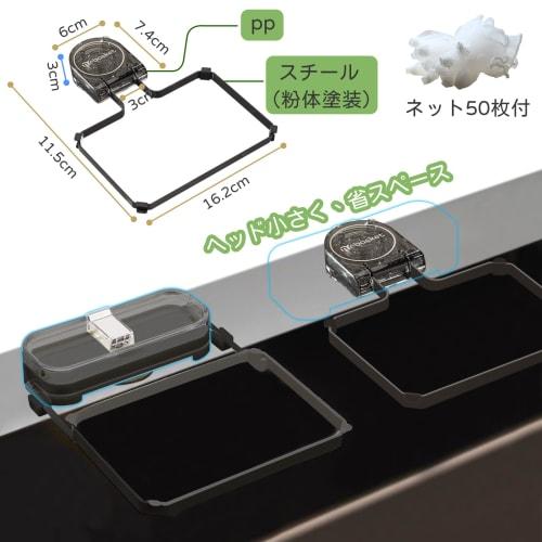 Mamakura Triangular Corner, Strong Suction Cup Draining Net Holder for Food Waste Disposal, Includes 50 Draining Nets, Black