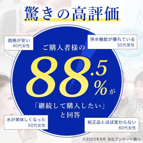 - Water purification ability: Removes 7 substances.(Free residual chlorine, CAT, 2-MIB mold odor, soluble lead, phenols, geosmin, anionic surfactant) Type of filter media: Hollow fiber membrane, ion exchange fiber, activated carbon, non-woven fabric.(Some packages do not reflect or list the removal items, but please rest assured that the water purification ability has been confirmed for 7 items in tests.) * Approximate time to replace cartridges: If 10L is used per day, approximately 4 months/unit.3 pieces for a total of 1 year.(The estimated replacement time varies depending on the amount of water used, water quality, water pressure, etc.)