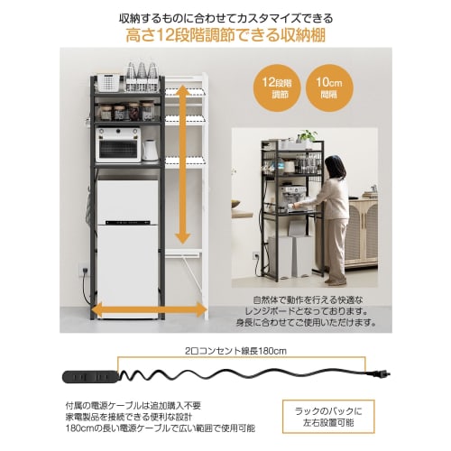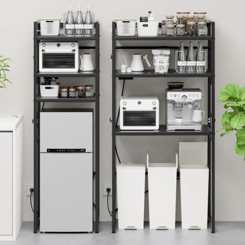 TKUIN Мусорное ведро/Стеллаж для холодильника [Ширина 50-80 см, Раздвижной, с двумя розетками] Стеллаж для микроволновой печи, Стеллаж для стиральной машины, Подставка для микроволновой печи, Регулируемая полка