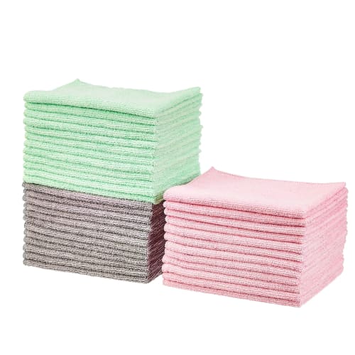 Basic Microfiber Cleaning Cloths, Multi-Purpose, for Cleaning, Car Washing, and Mopping, 36-Count (40 x 30 cm), Green, Gray, and Pink — купить товар онлайн с бесплатной доставкой до всему миру!