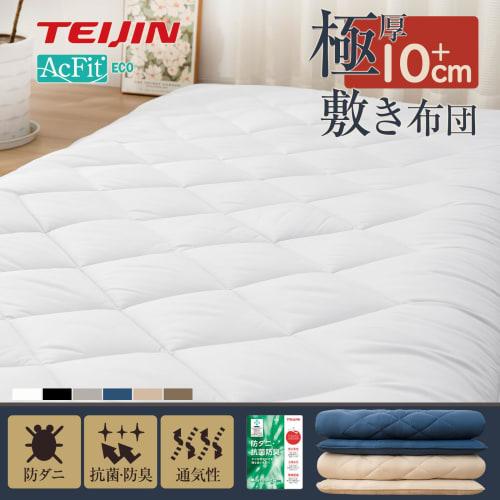 Extra-thick 10cm five-layer double futon mattress pad with TEIJIN Mighty Top filling. Antibacterial, odor-resistant, mildew-resistant, dust mite-resis