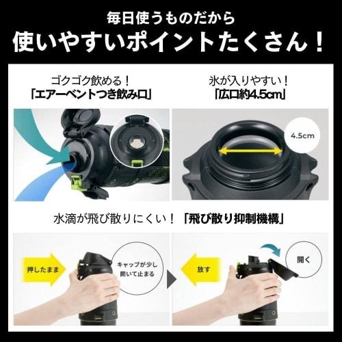 Zojirushi Thermos (ZOJIRUSHI) Water Bottle, Seamless Cap, Sports Type, Large Capacity 1.5L, Direct Drinking, Stainless Steel Cool Bottle, Lime Black,