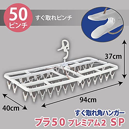 Nishida Pla50 Premium 2 SP 50-Pinch Corner Hanger, Polypropylene (PP), White, for Drying Clothes, and Laundry