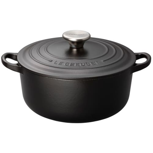 Le Creuset Cast Iron Enamel Cocotte Ronde Pot, 22 cm, Matte Black, Gas and Induction Oven Compatible [Official Japanese Product]