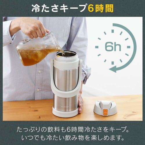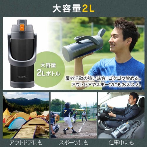 Iris Ohyama Kids' Sports Water Bottle, 2 Liters, Blue. Vacuum insulation keeps water cold for 6 hours! Large capacity, one-touch opening, direct drink