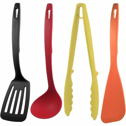 Nagao Tsubame-Sanjo Kitchen Utensil Set (4 Pieces): Spatula, Ladle, Tongs, and Spatula, Multicolor, Made in Japan