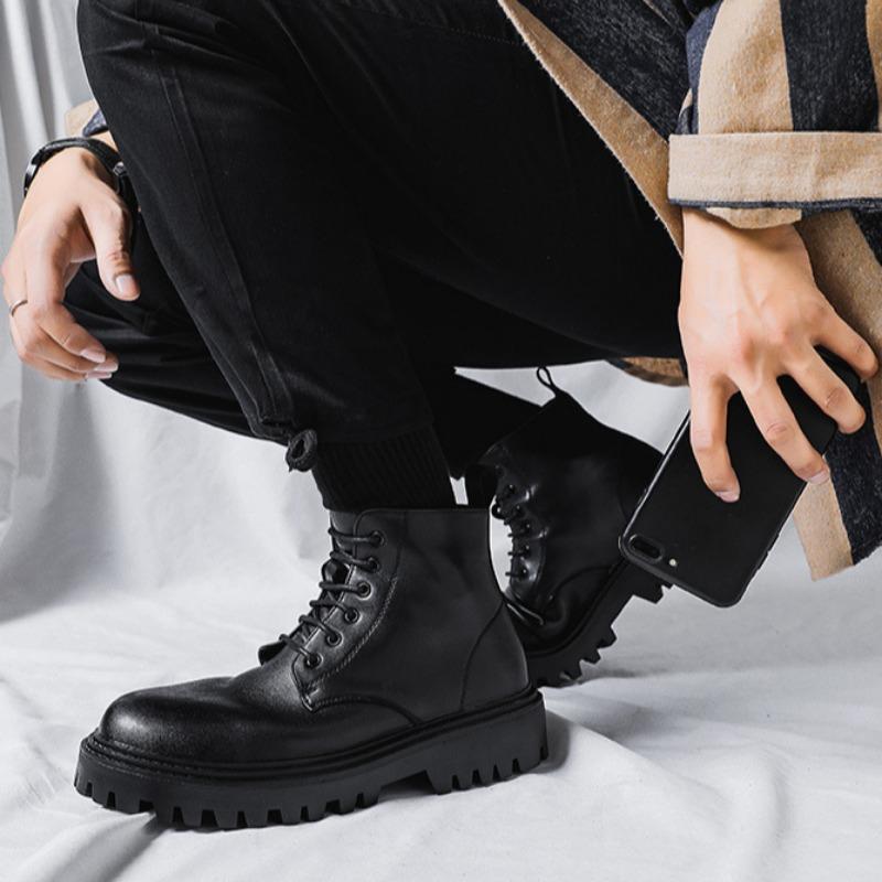 Классические мужские высокие ботинки, дизайнерские брендовые удобные повседневные туфли с толстой подошвой, мужские кожаные ботинки, мотоциклетные ботинки Botas