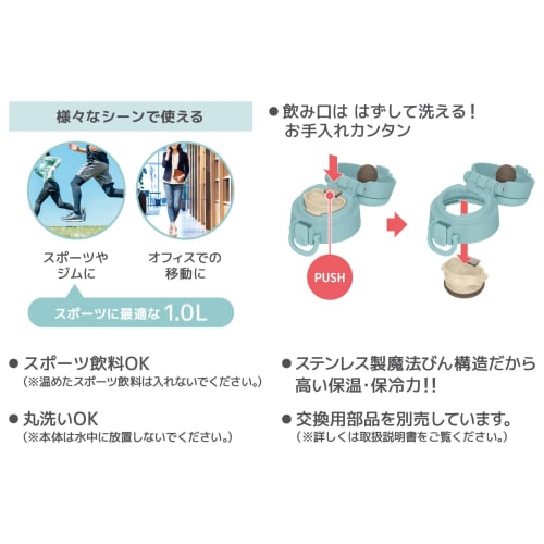 Thermos Vacuum Insulated Portable Mug, 1L, Mint Blue, JOS-1000 MBL