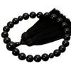 Buddhist Altar Shop Takita Shoten Kyoto Buddhist Prayer Beads for Men, 22 Black Onyx Beads, Silk Tassel with Head, Prayer Beads Bag, Suitable for All