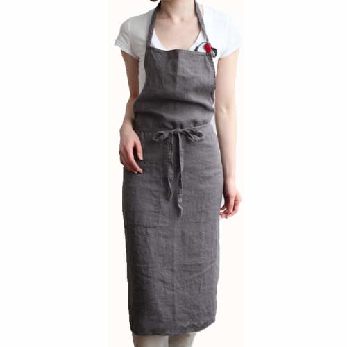 MLeisure Linen Apron, Cafe Style, Simple, Covered Bottom, with Pockets, Natural (01: Gray)