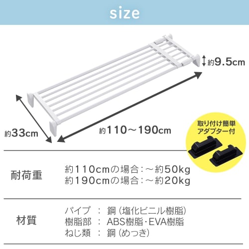 IRIS OHYAMA Extendable Laundry Rack, H-J-W110R, White, Ultra-Strong Extendable Wide Shelf, 50kg Load Capacity, 110-190cm Wide