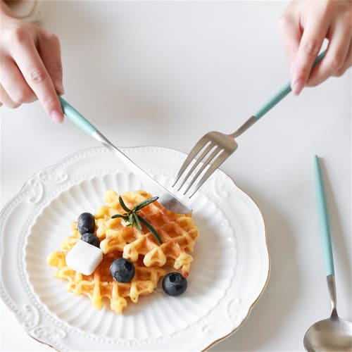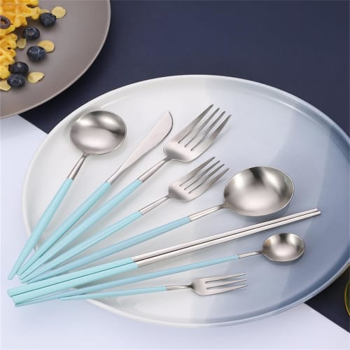 andoo Cutlery Set, Gold, Stylish Stainless Steel Dinner Cutlery Set, Knife, Spoon, Fork Set, Polished, Steak Knife, Table Knife, Dessert Spoon, Pasta