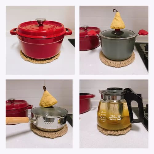 DARENYI Stylish Heat-Resistant Trivet, 17cm Inner Diameter, Large Size, Handwoven Flaxgrass Trivet with Hook, Natural Materials, Non-Slip, Wall-Mounta