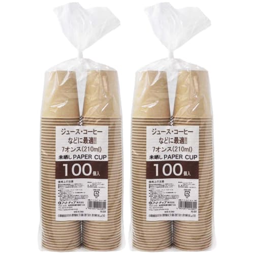 [.co.jp Exclusive] Artnap Commercial Unbleached Paper Cups, 210ml (7 oz), 100-count x 2-pack, 7cm (Mouth Diameter x Base Diameter x Height) PS-304