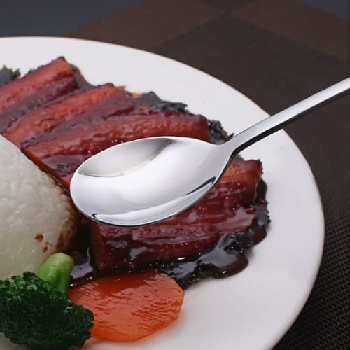 - Удобная суповая ложка. Умеренный вес облегчает балансировку при поднесении ко рту, а тонкий кончик ложки позволяет легко зачерпывать и есть блюда типа хот-пот, жареный рис, омурайсу и омлеты с начинкой. Длинная ручка не проваливается в миску/тарелку, имеет подходящую толщину и небольшой изгиб, что делает ее функциональной ложкой, эргономично разработанной для удобного захвата и использования.