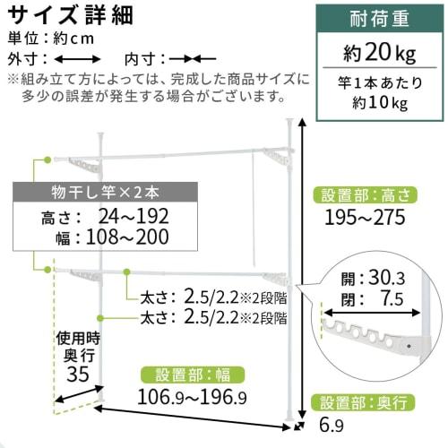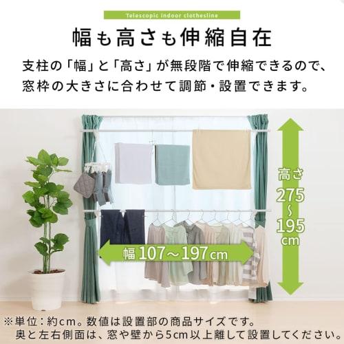 Bon Furniture Indoor Clothes Dryer, Tension Type, Window Frame, Hanger Rack, Width 107-197cm, Height 195-275cm, Extendable, 2 Tiers, Indoor Drying