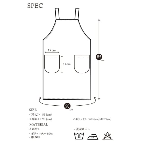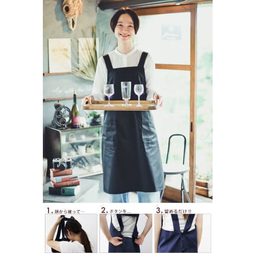 PRISM UNIFORM H-Shaped Apron, Shoulder Strap, Wrinkle-Resistant, Solid Color, Simple Design, Stylish, with Pockets, Cafe Apron for Nursery School Teac
