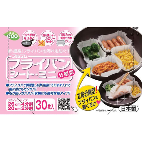 Artem Cooking Sheets, Mini Frying Pan Sheets, Divided Box Type, Silicone Resin Coated, Made in Japan, 30 Sheets, White