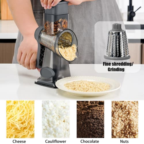 Rotating Cheese Grater/Shredder with Handle, Handheld Round Mandolin, Vegetable Slicer, Carrot Shredder, Nut Grinder with 3 Replaceable Stainless Stee