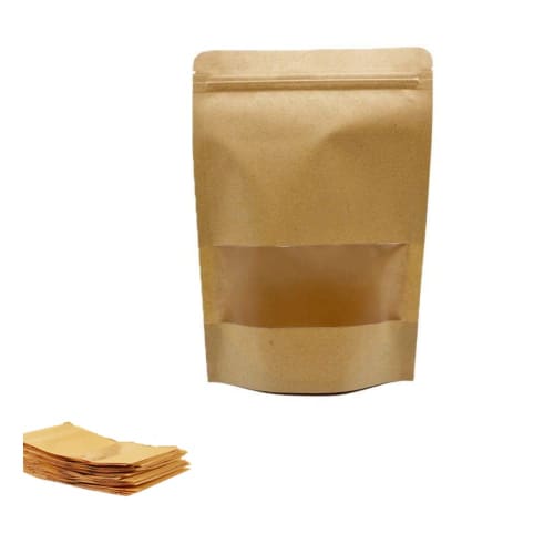Itisyou Airtight Food Storage Bags, Zip-Up Bags, Freestanding Bags for Snacks, Kraft Paper Bags with Window, Kraft Paper Bags, 9 x 14cm, Pack of 100