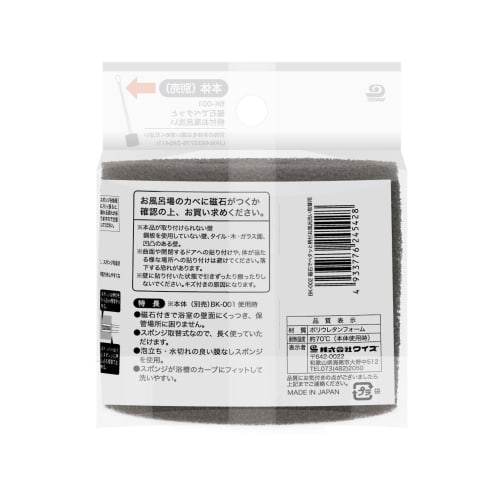 Wise Bathroom Sponge Spare, Magnetic Handle, Replacement for Bath Cleaning, Black, Made in Japan, Convenient, Easy-Drying, Simple, Space-Saving, BK-00