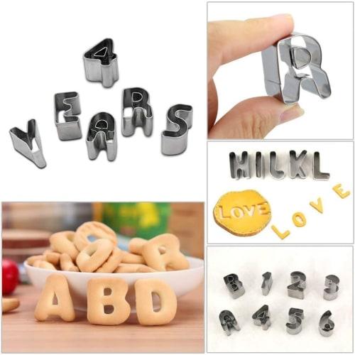 - Product specifications Product name: Biscuit mold.Material: Stainless steel.Shape: numbers, letters.Quantity: 36 pieces