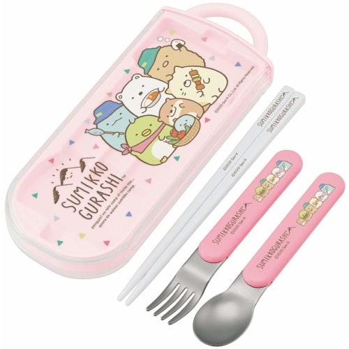 Skater Kids' Ag+ Antibacterial Trio Set: Chopsticks, Spoon, and Fork, Sumikkogurashi Design, Camping, Made in Japan, TACC2AG-A