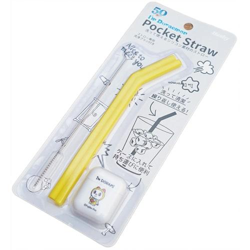 Hassey Top-in Straw with Storage Case, Soft Silicone, My Straw, Eco-Friendly, Boilable and Sterilizable, Doraemon and Dorami Design, SR-3239