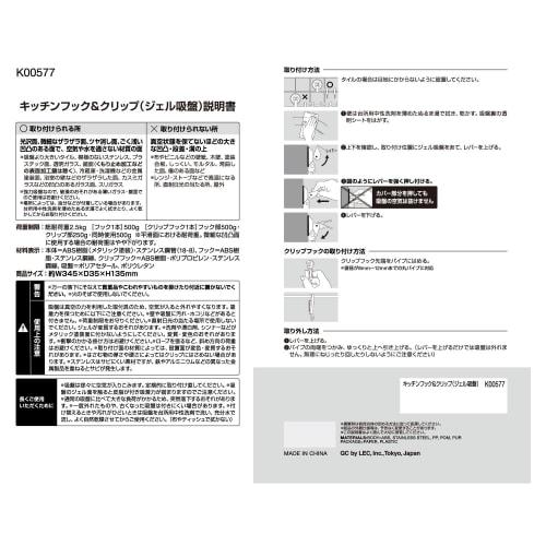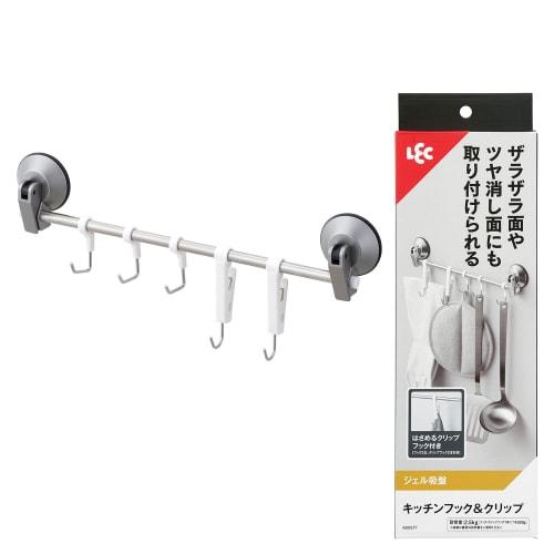 LEC Кухонный крючок и зажим (Гелевая присоска), Вместимость 2,5 кг, Размеры: приблизительно. 345 x 35 x 135мм