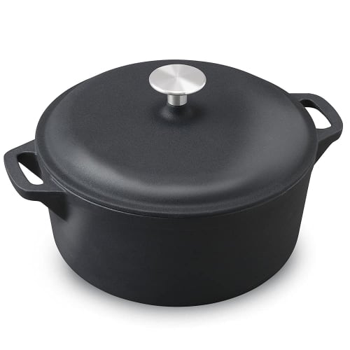 - Material type/Body: Cast iron enamel/Lid: Cast iron enamel/Knob: Stainless steel (18% chromium, 9% nickel)