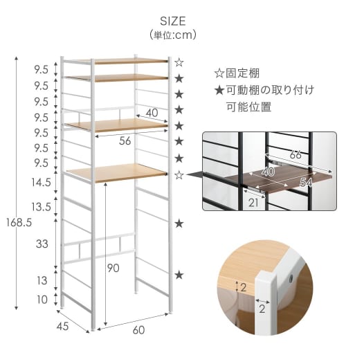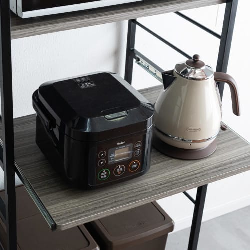 Tansu Gen Kitchen Rack, 60cm Wide, Fits Large Microwave Ovens, Height Adjustable, Sliding Shelf, Hook-Type, Heavy-Duty Capacity, Slim, Heavy-Duty Desi