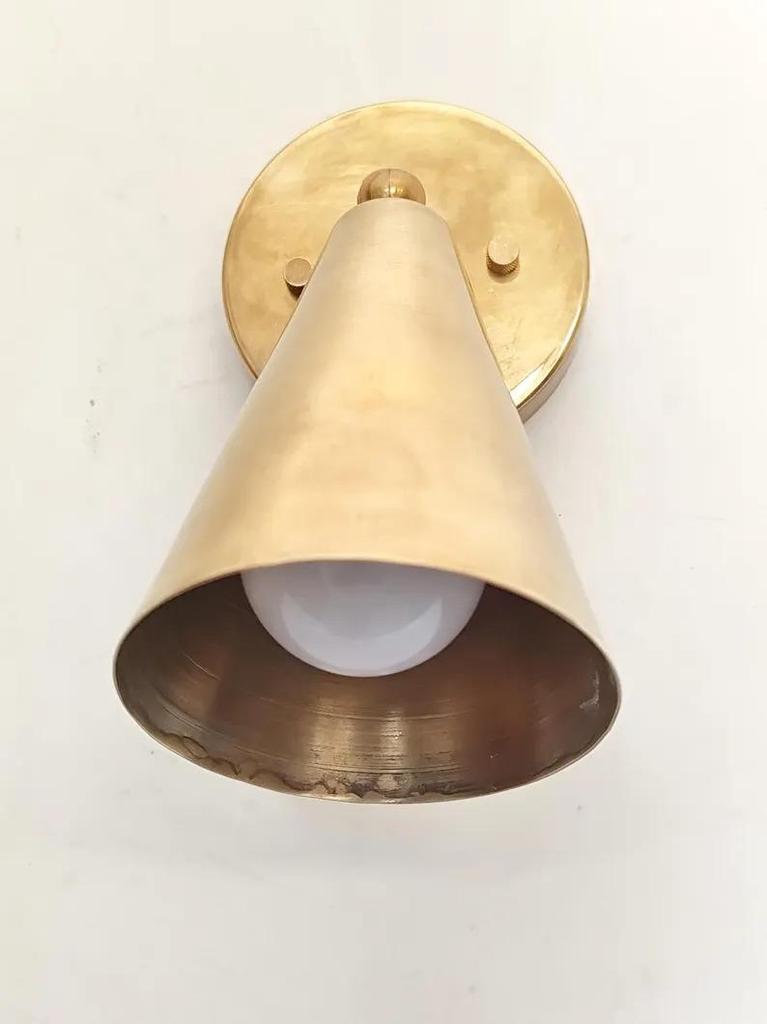 Light Raw Brass Wall Sconce Light | Italian Wall Scone Lamp | Cone Wall Lamp Scone | Mid Century Wall Scone Fixture
